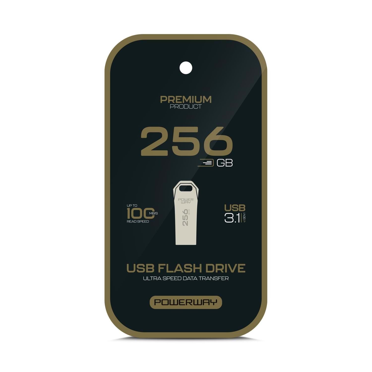 Powerway Premium 256 GB USB 3.1 Metal Gövde Ultra Hızlı Flash Bellek Data Traveler