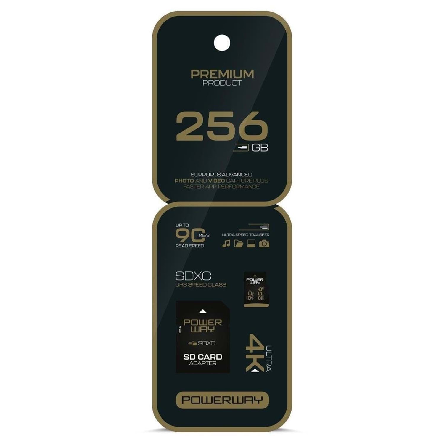 Powerway Premium 256 GB MİCRO SDXC UHS Class 4K Ultra Hızlı Hafıza Kartı + Adaptör