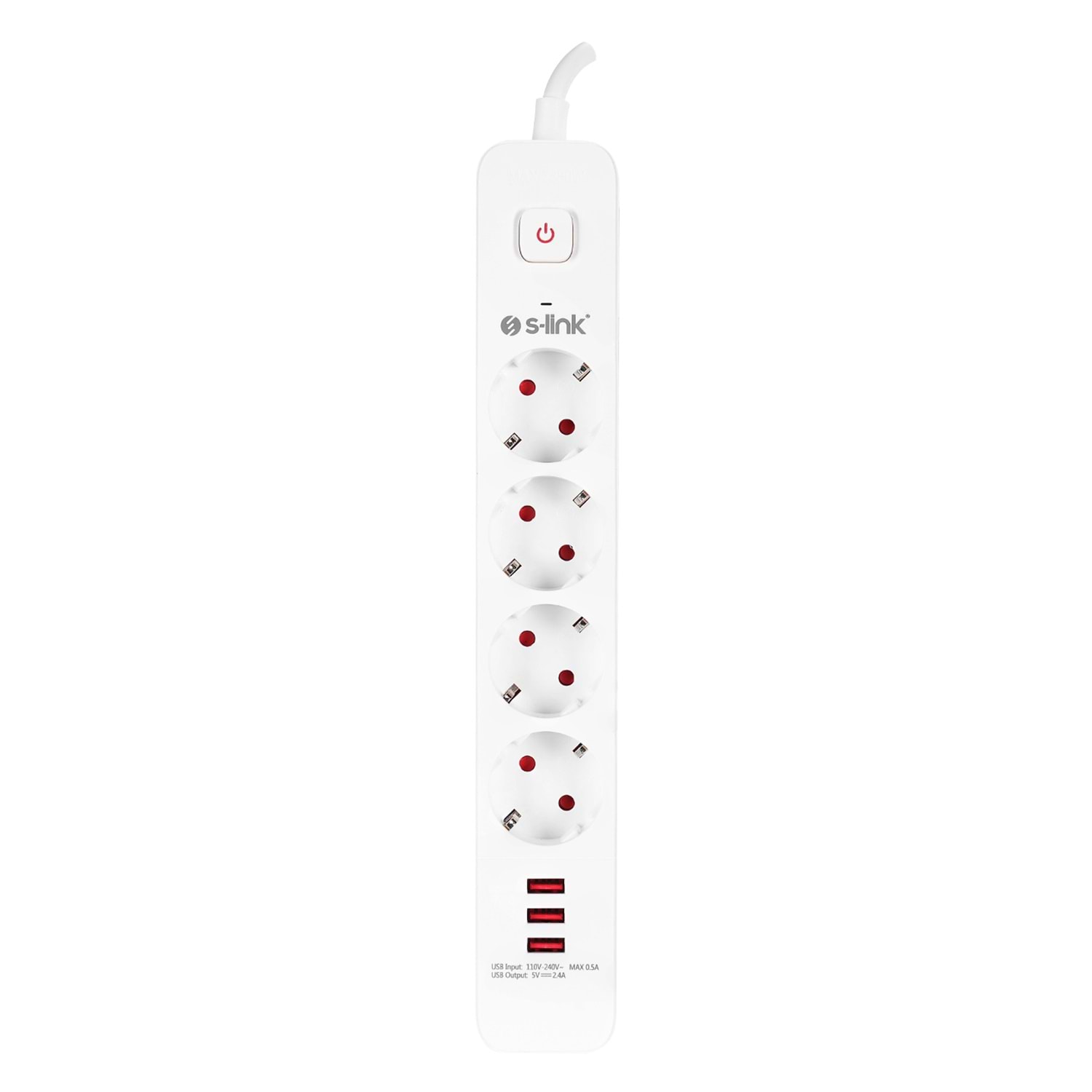 S-link SPG403U 1.5m 1.5mm 100% Bakır 750 Joule 3 Usb 5V2.4A 4lü Anahtarlı Akım Korumalı Priz