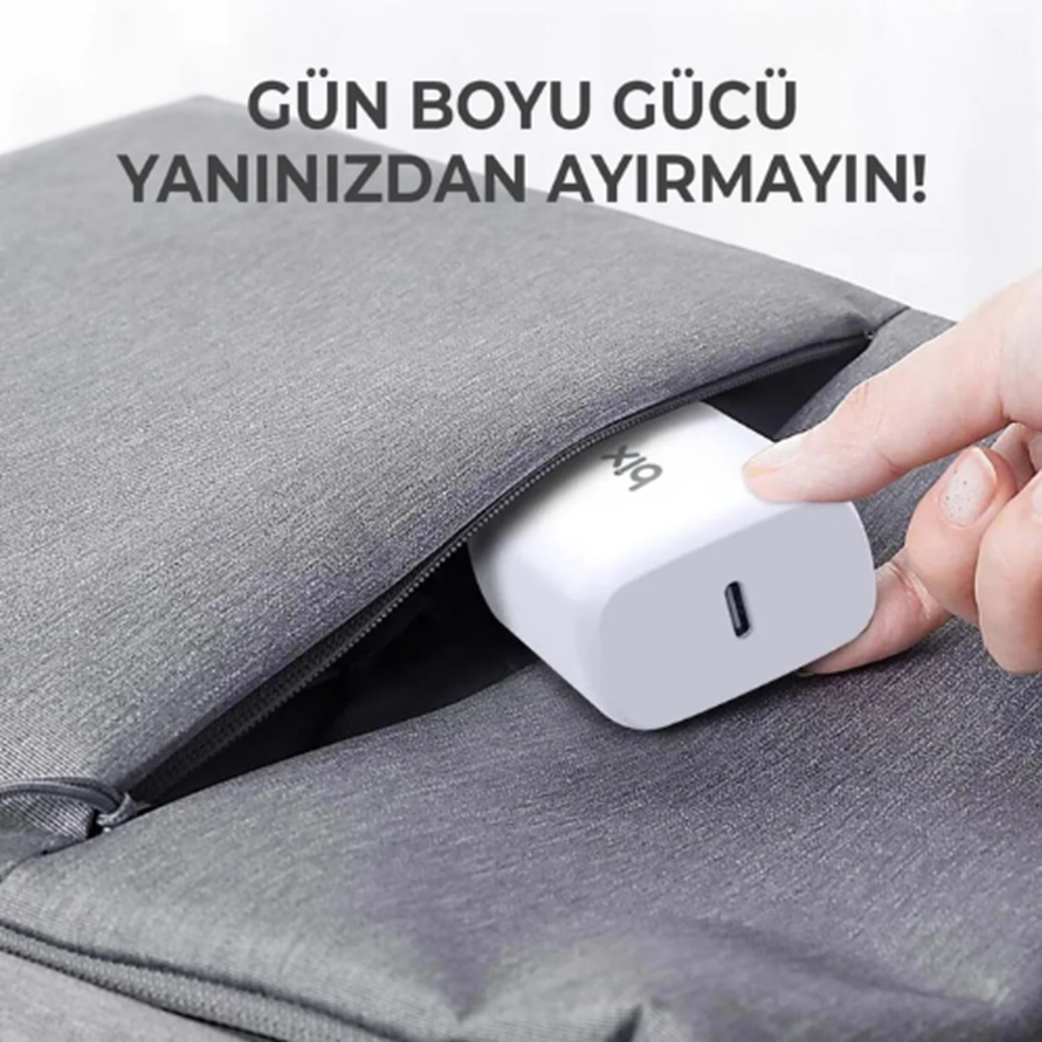 Bix BXL21W 20W PD Hızlı Şarj Adaptörü + 3A USB-C'den Lightning Kablo 1 Metre Beyaz