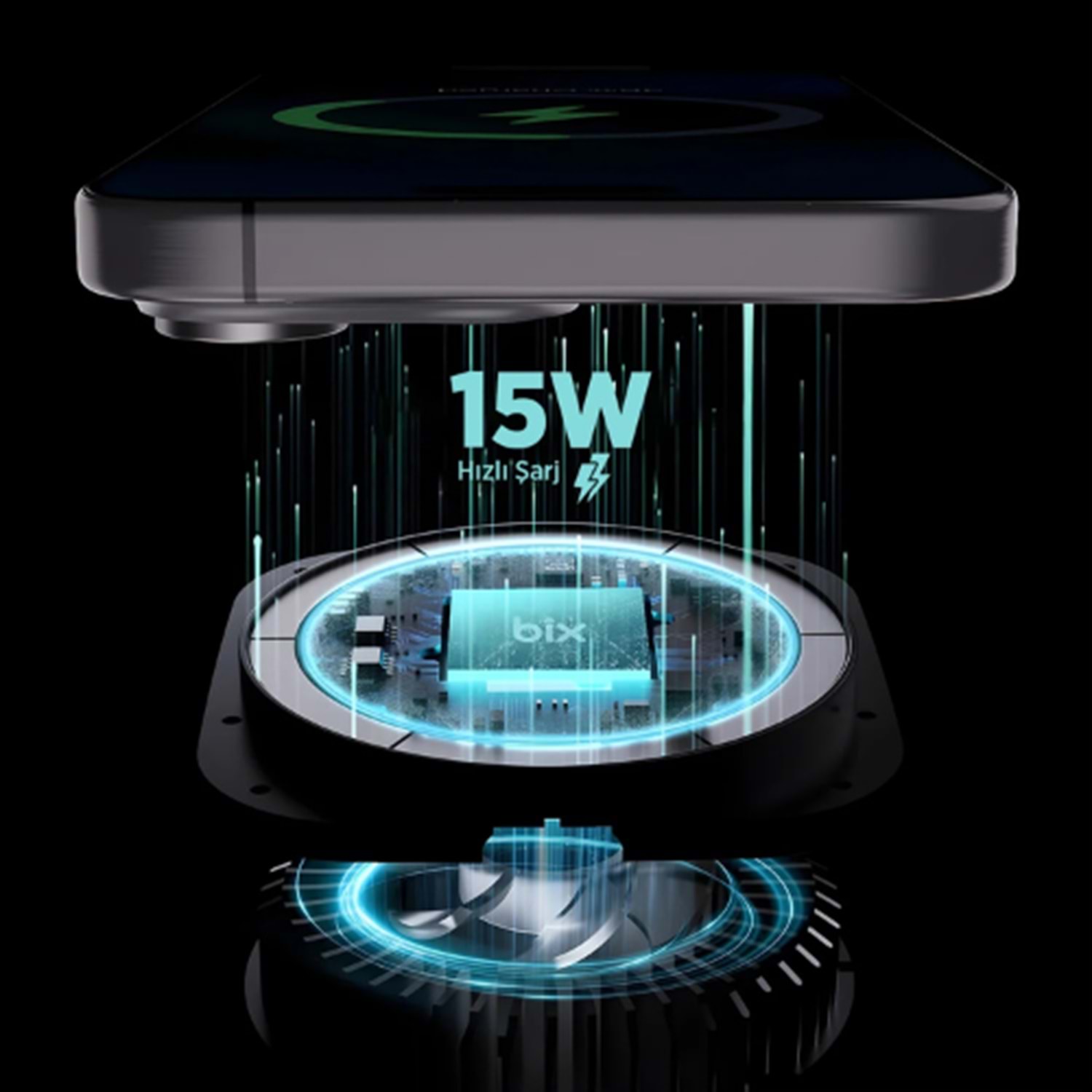 Bix BXCH10 15W Kablosuz Şarj Destekli 180° Ayarlanabilir, Çok Açılı Manyetik Araç İçi Telefon Tutucu Gri