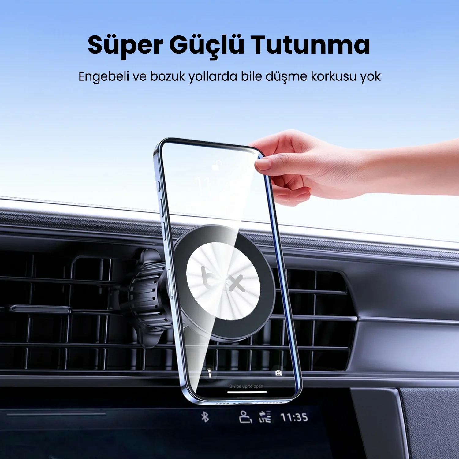 Bix BXCH14 360° Ayarlanabilir Hava Menfezi için Metal Kancalı Manyetik Araç İçi Telefon Tutucu Siyah